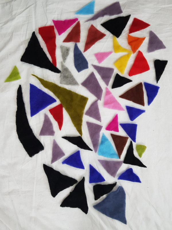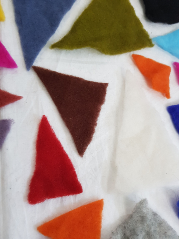 Driehoekjes naaldvilt, diverse afmetingen/kleuren.