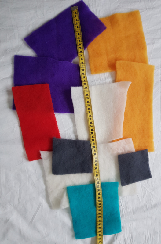 Assorti fijn naaldvilt, diverse kleuren, afmetingen. Zoals op de foto, op = op.