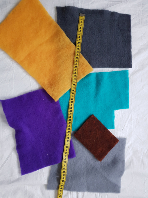 Assorti fijn naaldvilt, diverse kleuren, afmetingen. Zoals op de foto, op = op.