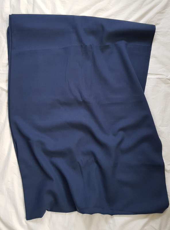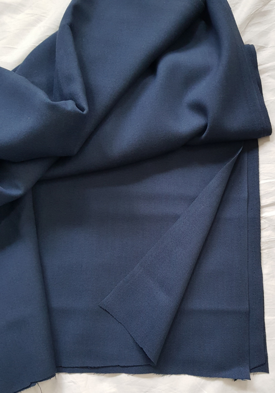 Deels synthetisch, (ik denk wolmengsel na brandproef-test), ietsje stretch, prachtige kwaliteit.