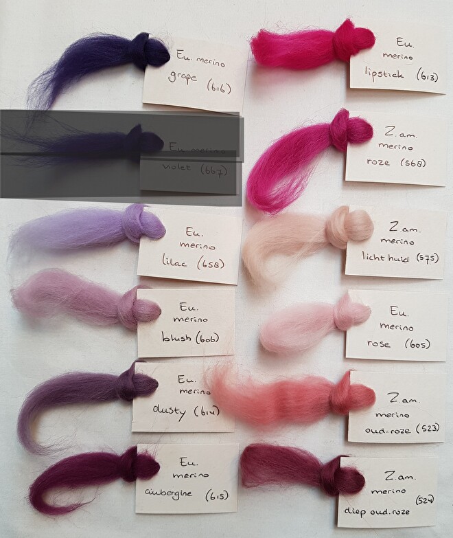 Zie de afbeelding voor de kleurkaart paars - lila lontwol, of download hier de kleurkaart, gratis uiteraard.