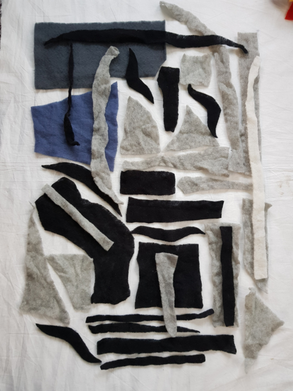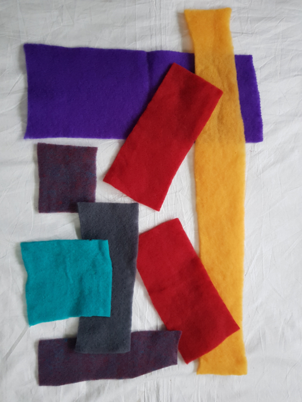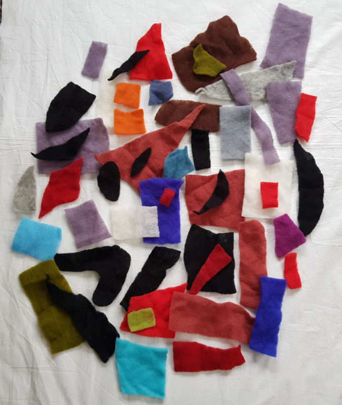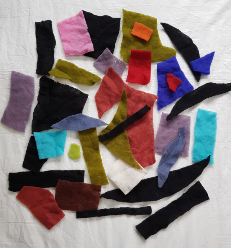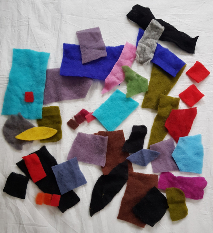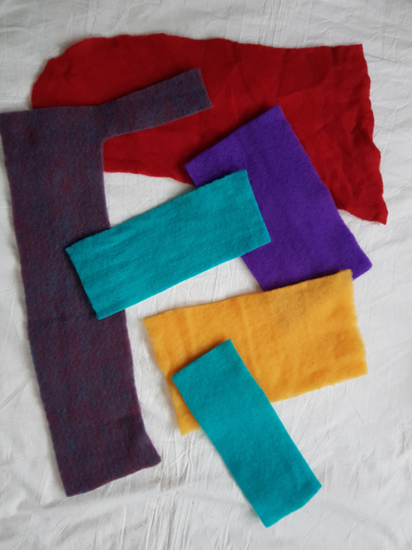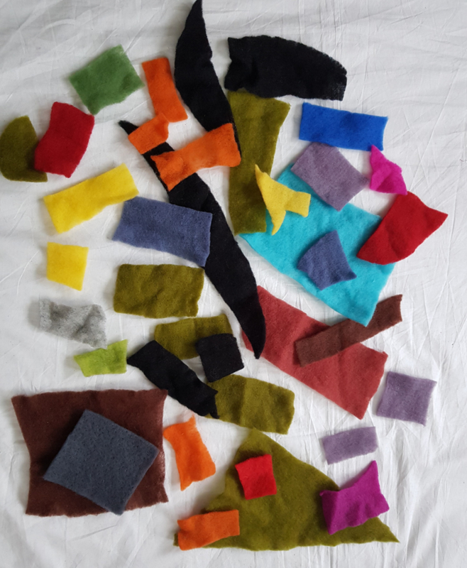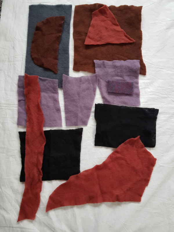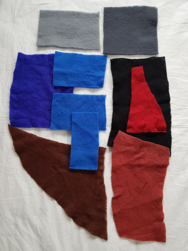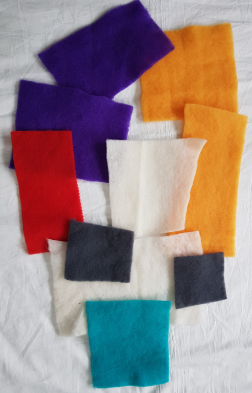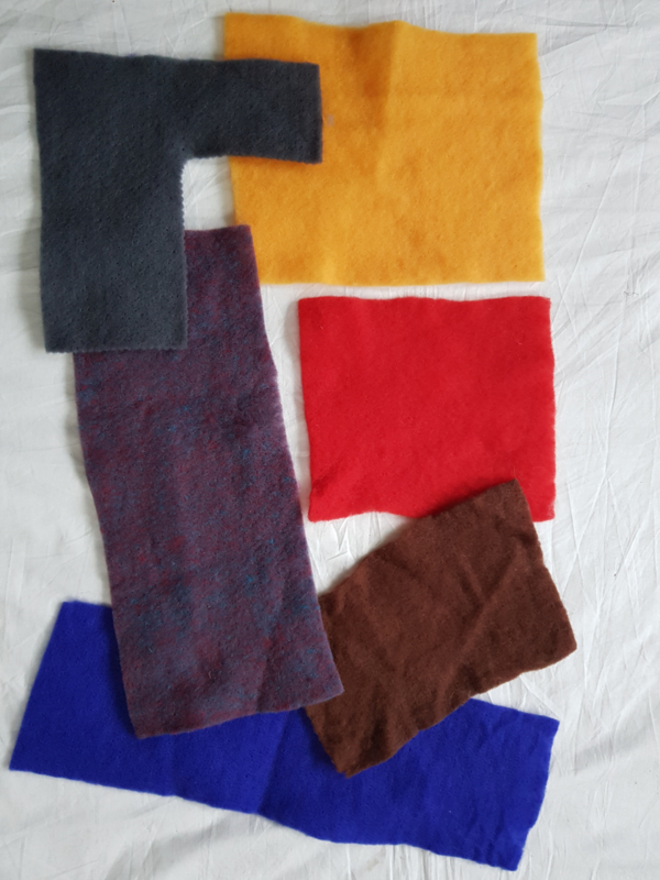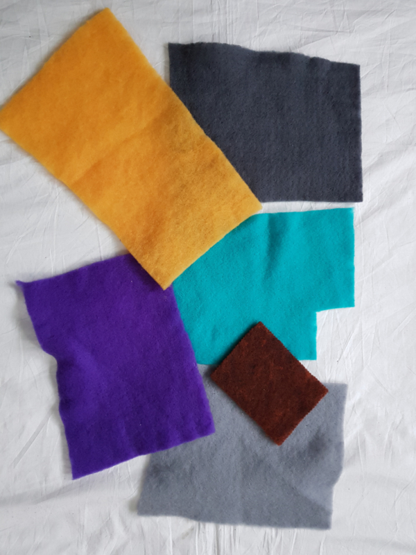 Genaaldvilte wol, wollen vlies, naaldvilt, voorvilt, naaldvlies, ongeverfd en geverfd.